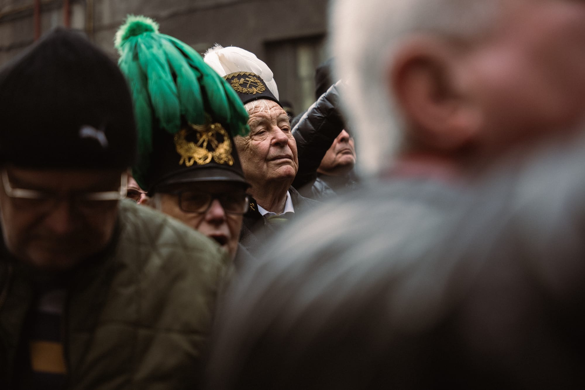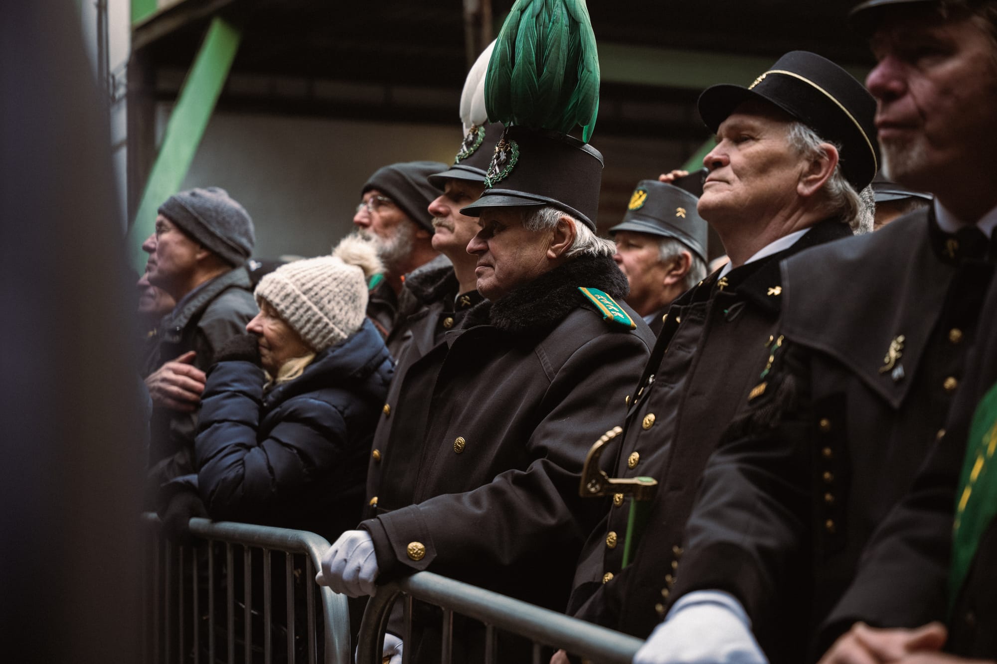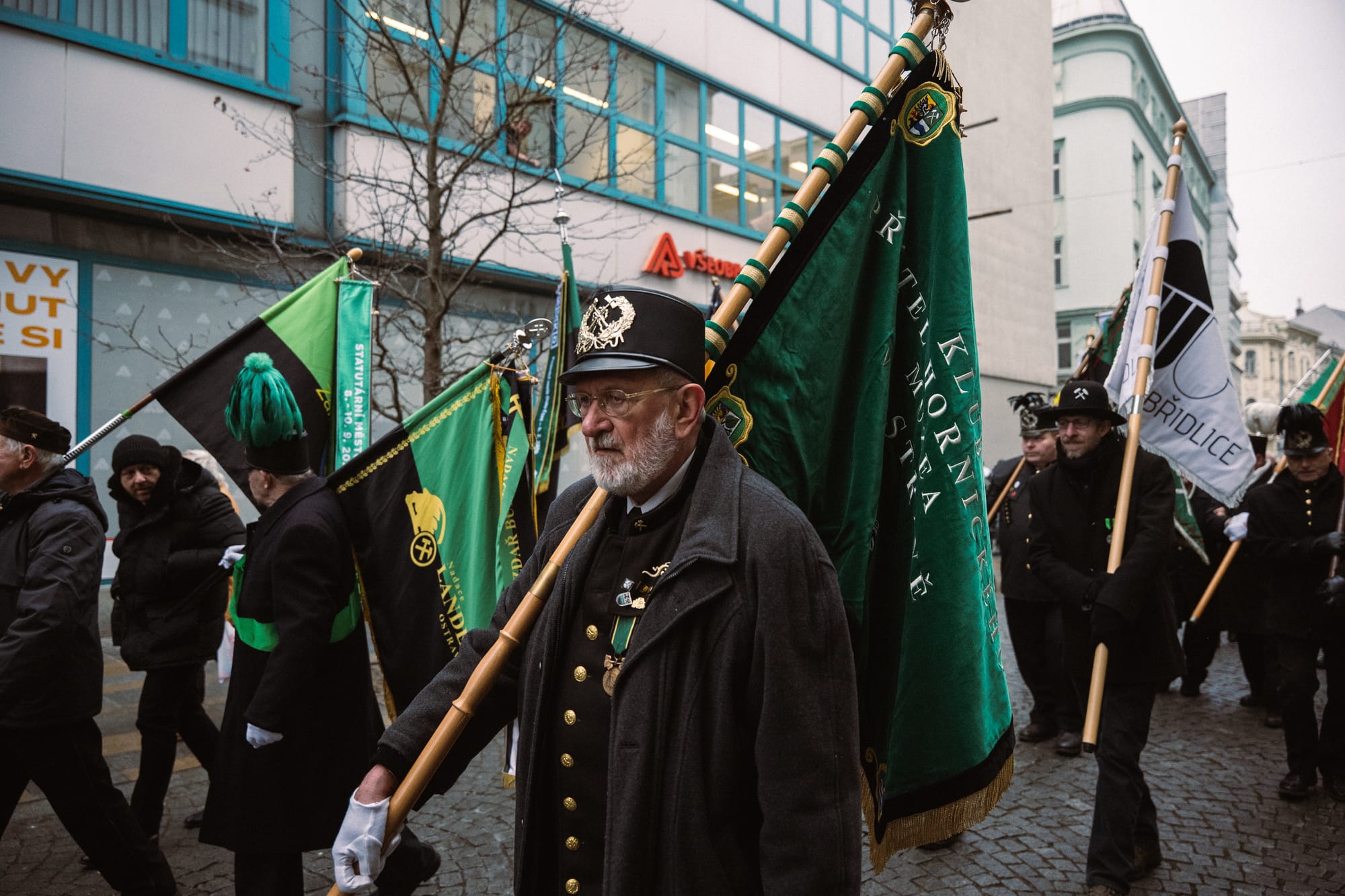 Slavnostního ukončení těžby se zúčastnily hornické spolky z Česka i Slovenska. Průvod lákal pozornost.