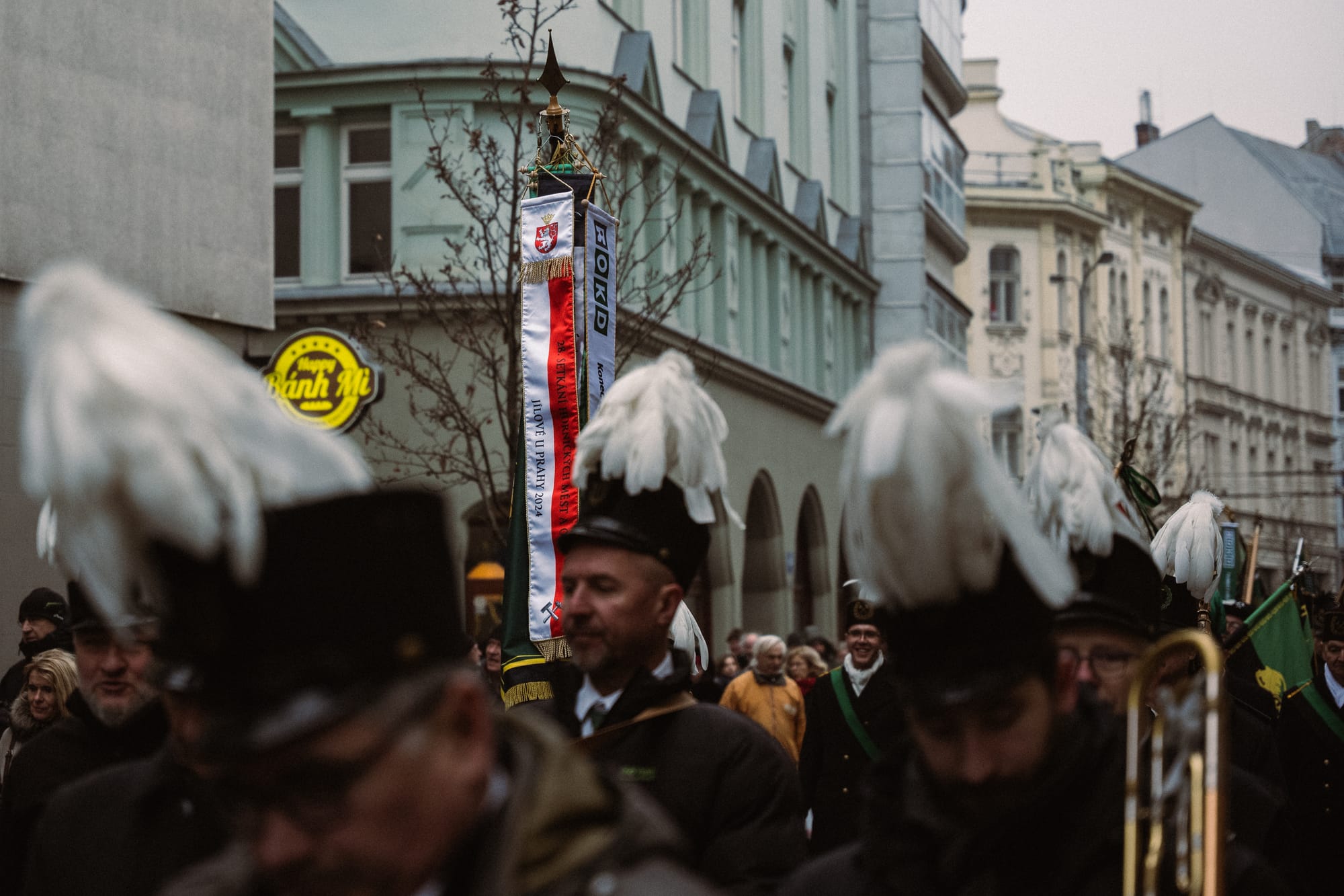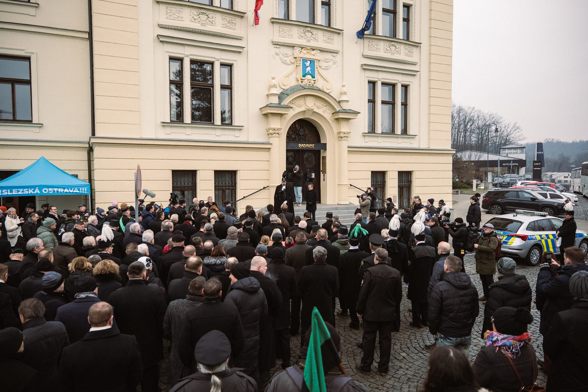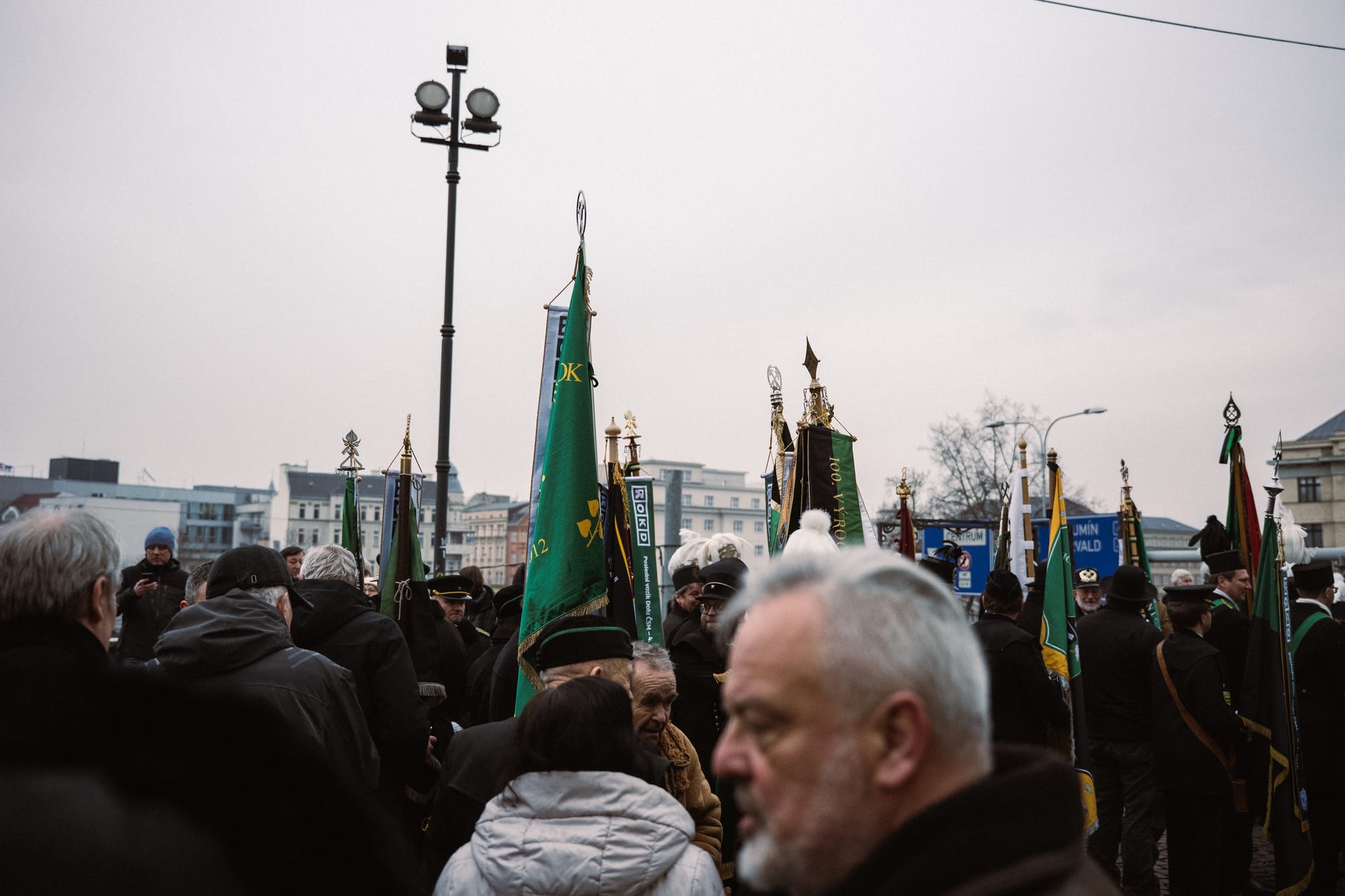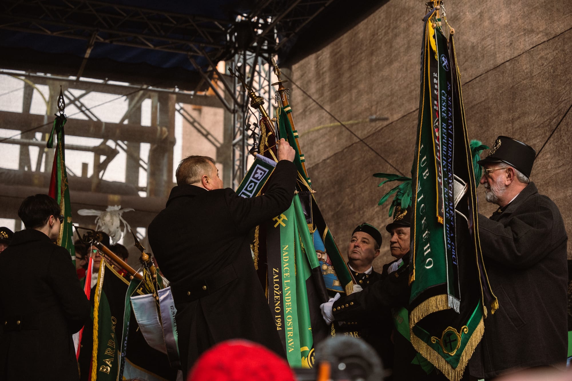 Ceremoniál pokračoval odpoledne v Ostravě. Průvod s hornickou kapelou v čele vyšel od Slezskoostravské radnice. Právě na Slezské začal celý hornický příběh regionu - v 18. století zde bylo nalezeno uhlí. Na něm se postavilo město, jak ho známe dnes.