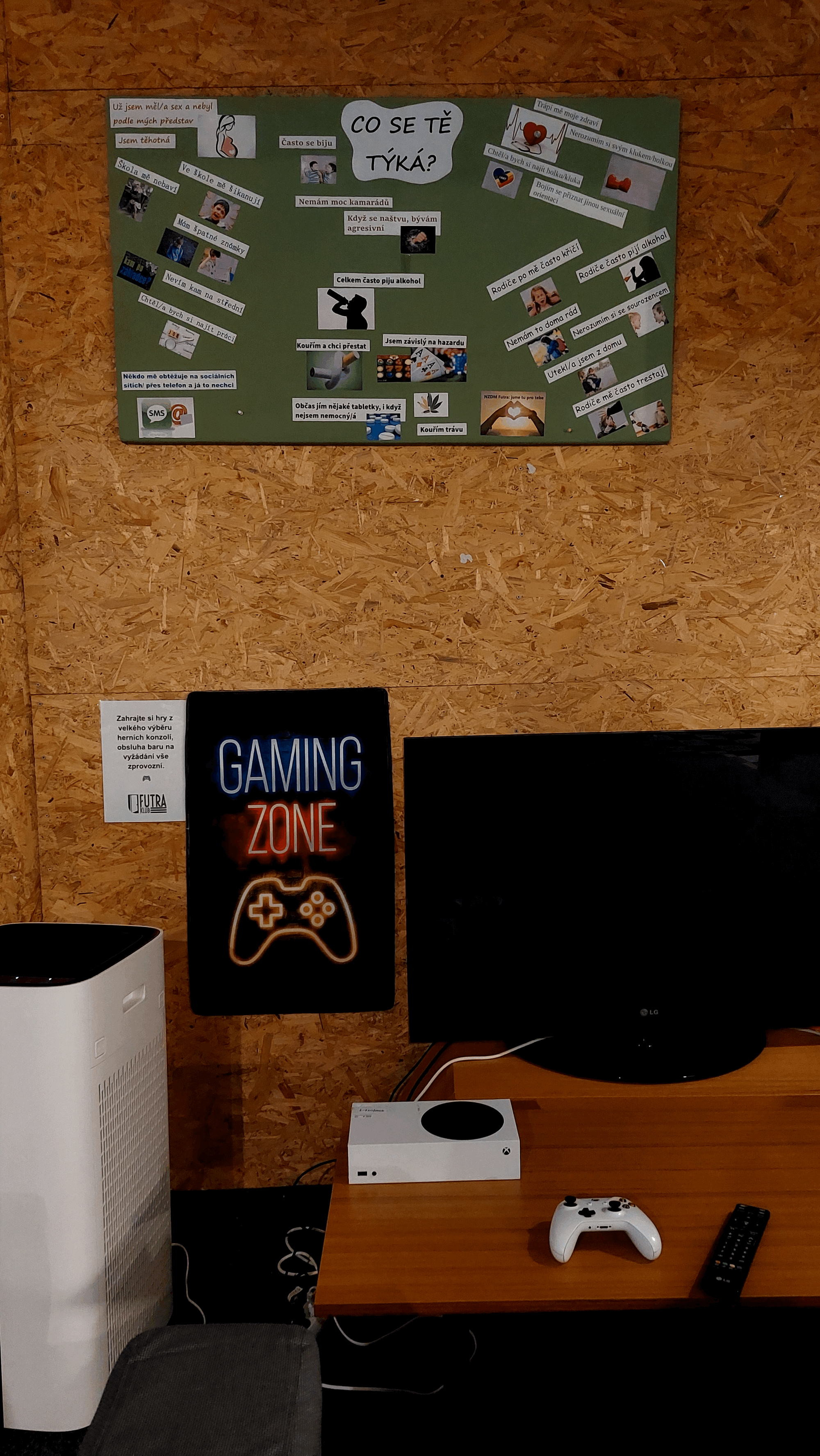 „Provádíme intervenci, co je trápí, co zrovna řeší. Zhruba kolem patnácti dětí vždycky přijde. Poprvé nepřichází s tím, že chtějí něco řešit, ale protože jsou tady kamarádi, jsme tu my, je tady zábava. A řeší úplně vše – od školy přes rodinu, závislosti až po vztahové problémy,“ přibližuje Lasota. Jeho tým tak přirozenou cestou odkrývá, co dítě trápí a jak mu mohou pomoci. Vyráží i na základní školy, kde na besedách promítají tematické dokumenty a představují svůj klub.