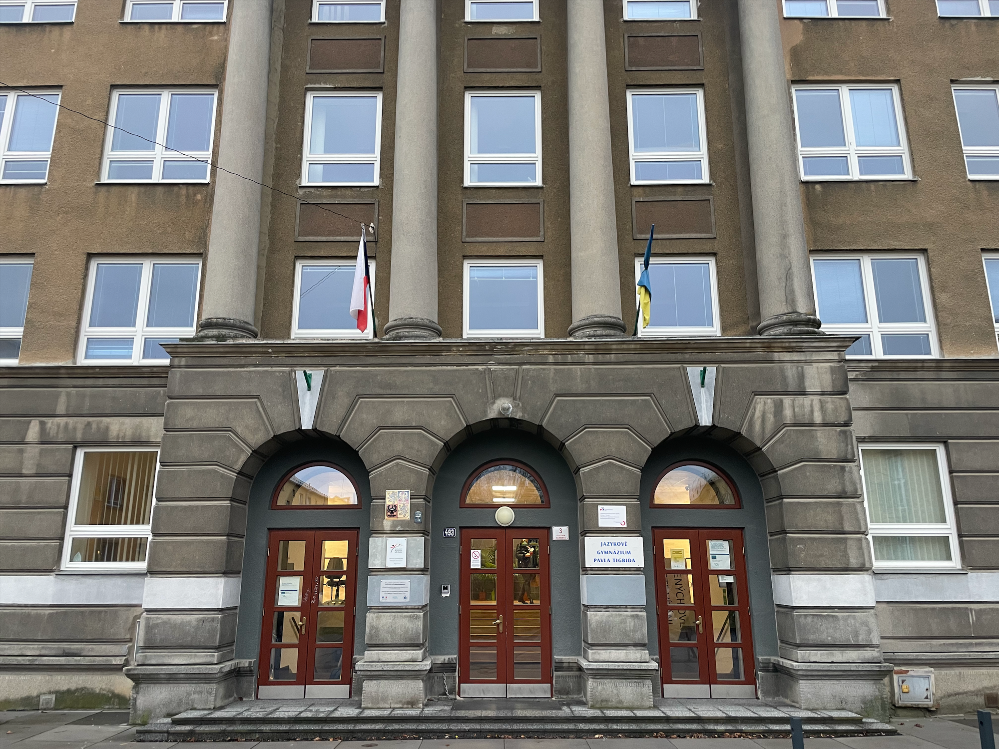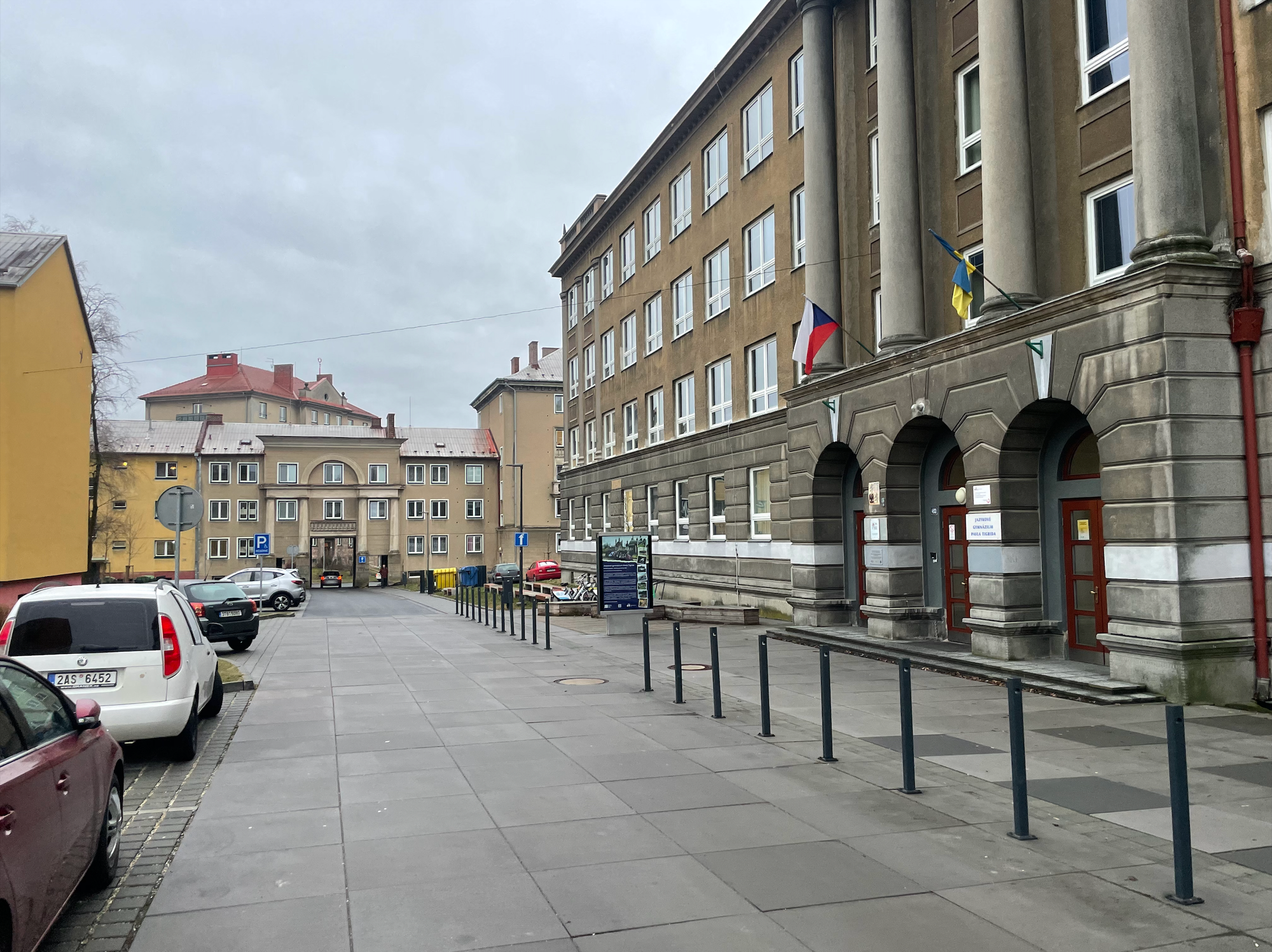 Ulice Gustava Klimenta a Jazykové gymnázium Pavla Tigrida. Foto: Jan Žabka
