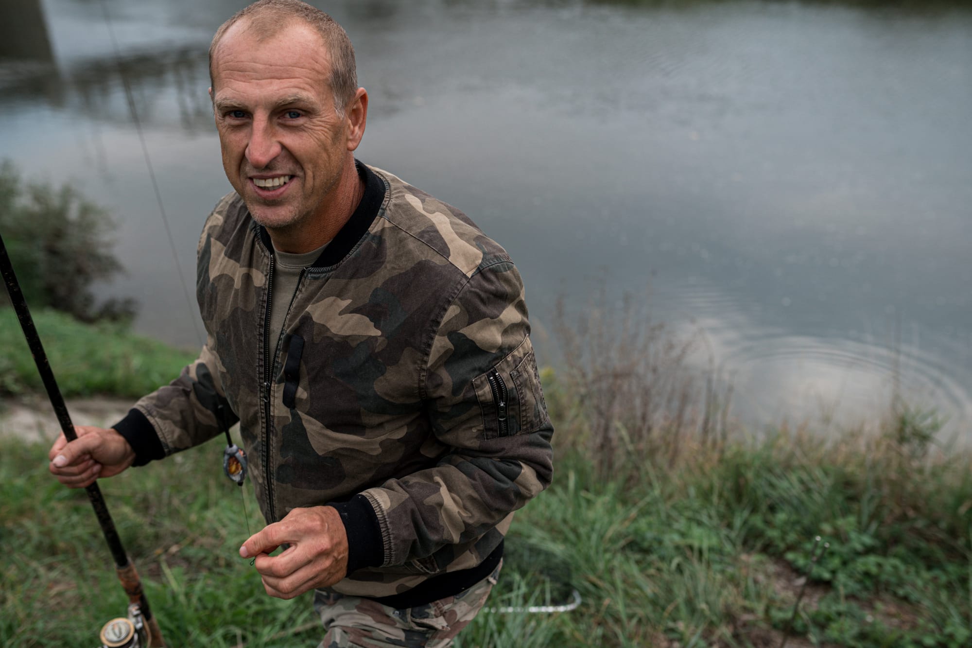 Tomáš John chodí relaxovat k Odře už třicet let. V polovině září letošního roku má ve vodě natažený prut, nechybí ani skútr. Celý v maskáčovém oblečení se natahuje a hází do vody druhý prut. V Bohumíně, u mostu do polských Chalupek, chytá ryby jen sportovně, nejí je. „Dřív jsem tady chytal bílé ryby, jako cejny, plotice, ale to už tady není, protože je tu hodně sumců. Často chytám i kapry,“ říká John.