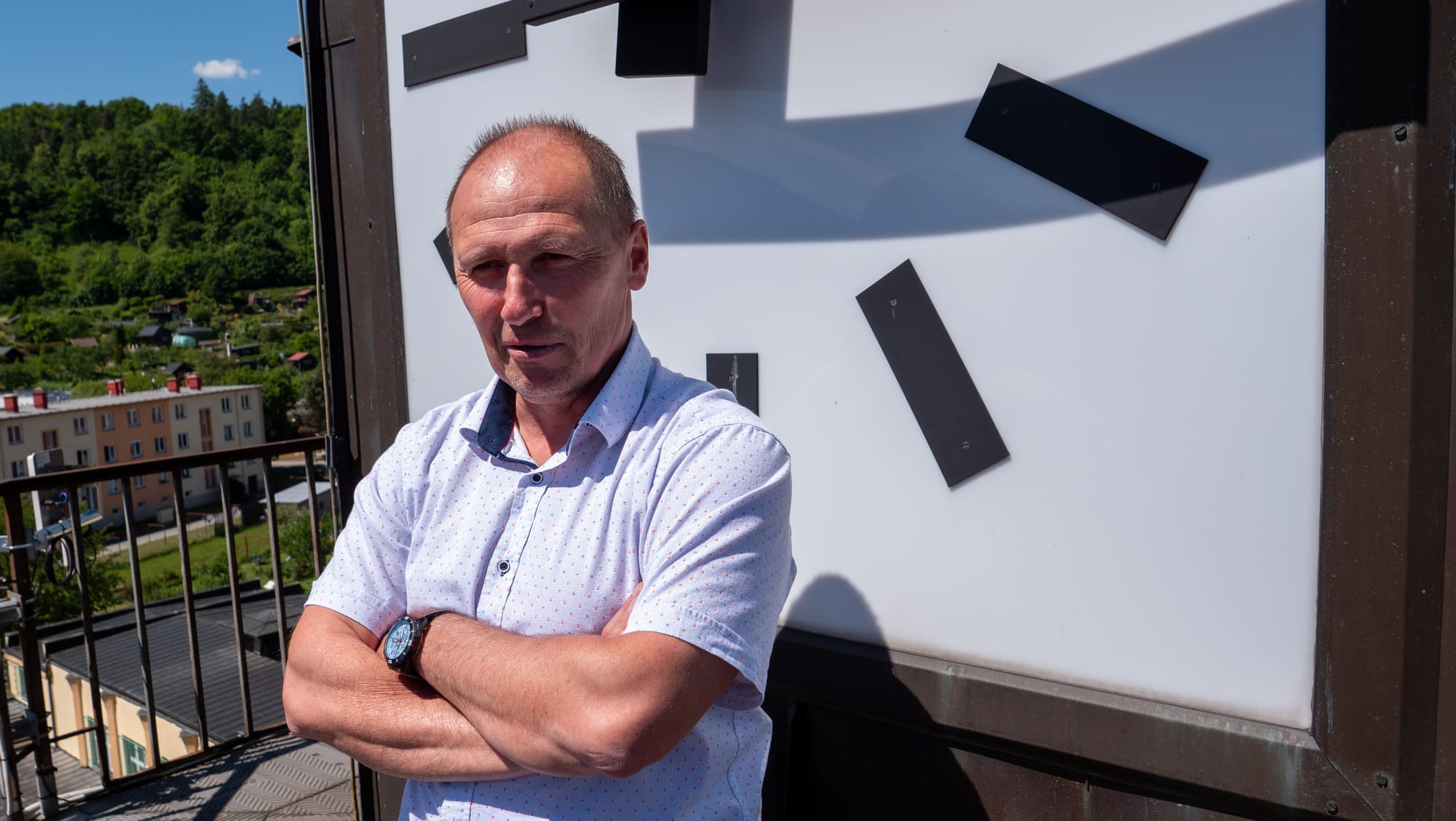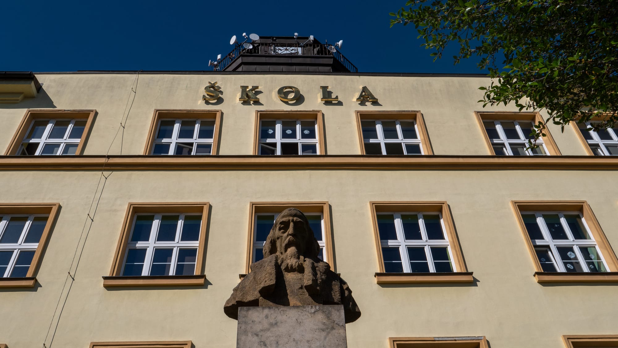 Když se blížíme ke konci prohlídky, ředitel ještě dodává, že školu tvoří vedle žáků i učitelé a i o ně se musí dokázat postarat. „Moji zaměstnanci mají vyšší osobní příplatek než já. Motivujeme je a zahrnujeme do rozhodování o směřování školy. Já je tady chci. Co tady budu dělat, když tu nebudou? Odučím si to sám?“ říká v nejvyšším bodě budovy - na hodinové věži školy.