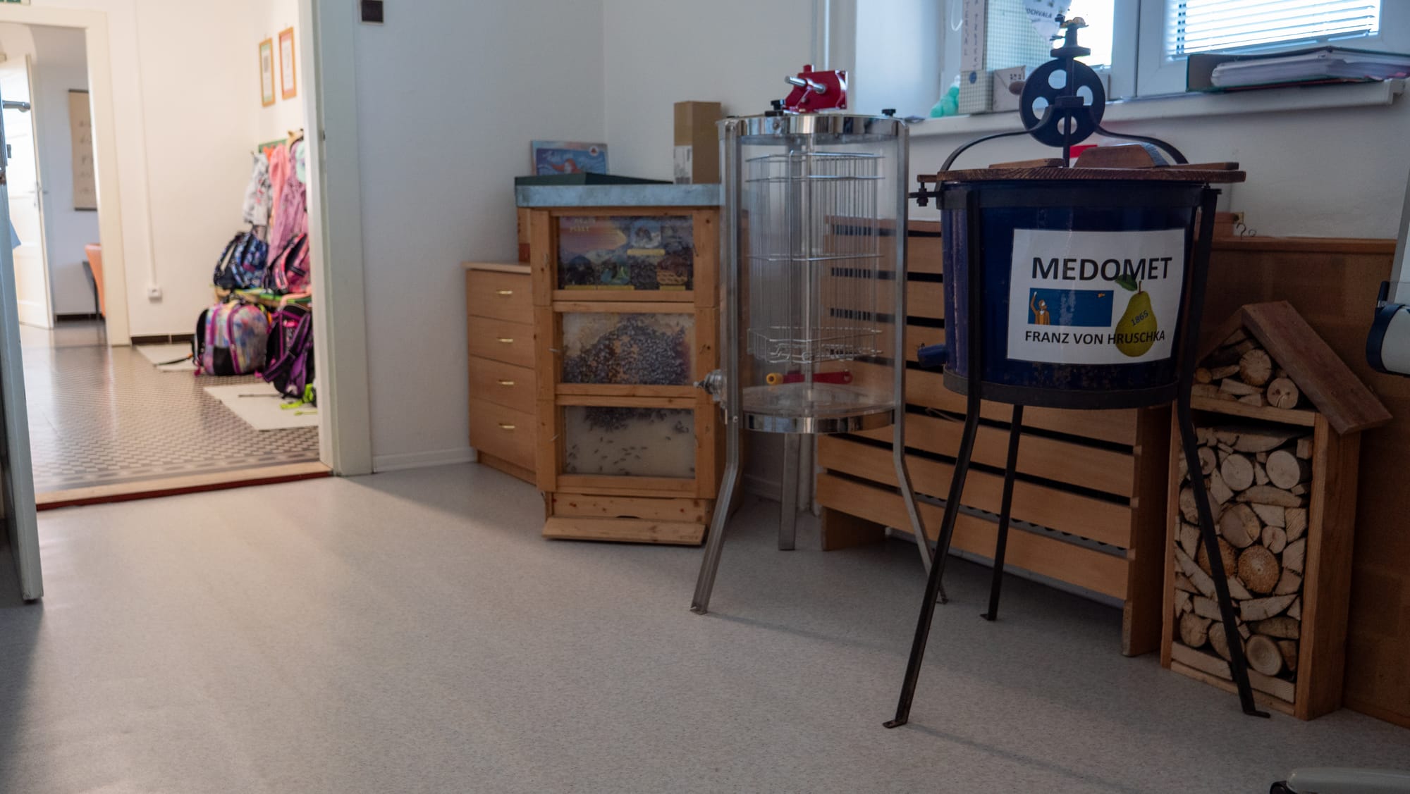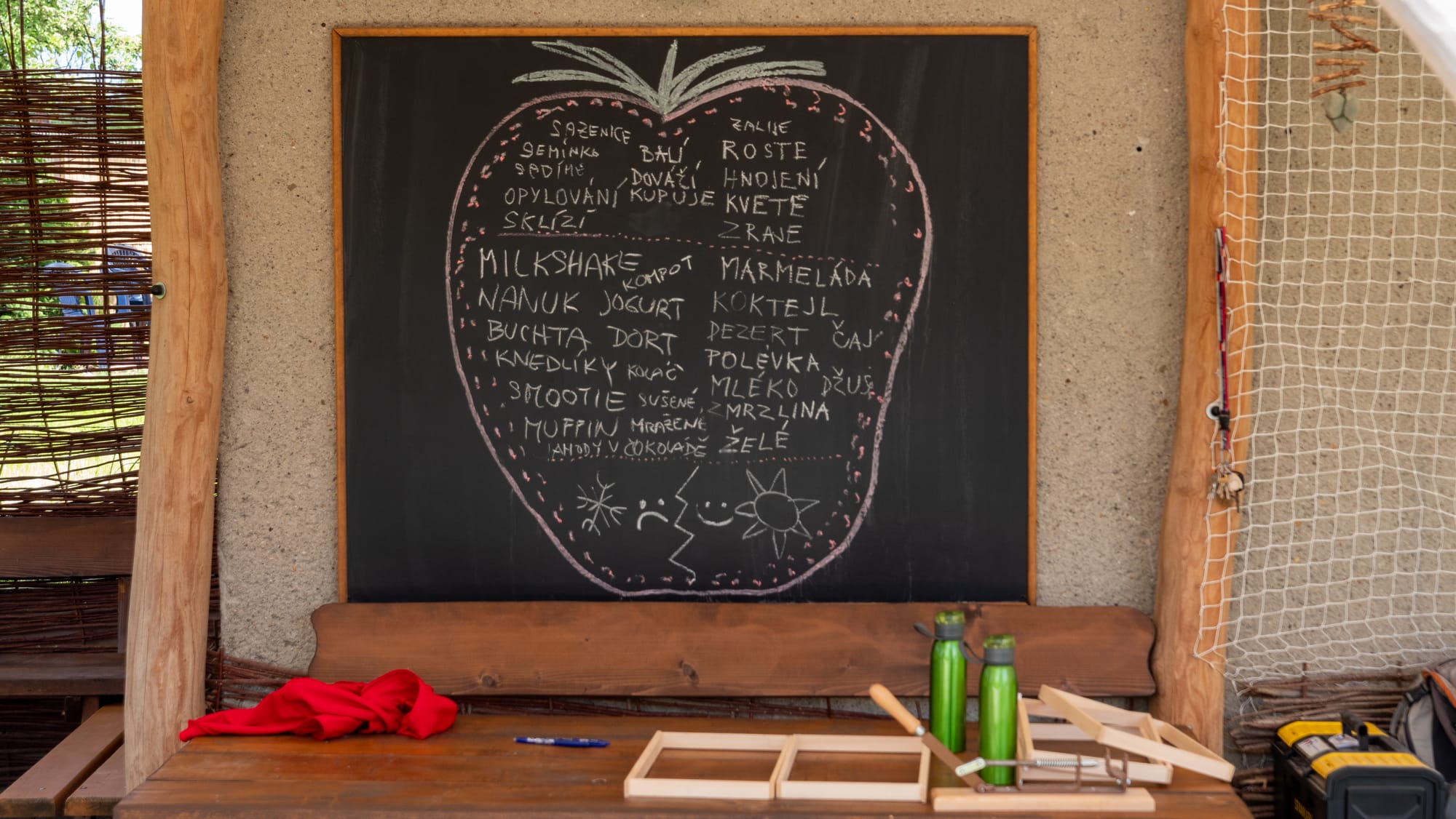 „Pokaždé když to jenom trochu jde, tak jdeme do venkovní učebny,“ vysvětluje jedna z nich. Zmíněná učebna vypadá jako zastřešené posezení s tabulí na zahradě školy. Zatímco jsou děti venku po konci výuky a čekají, až si pro ně přijedou rodiče nebo přijede autobus, hrají si v hlíně, honí se okolo včelích úlu a májky, kterou jim pomáhali stavět rodiče. I oni jsou aktivní součástí školy.